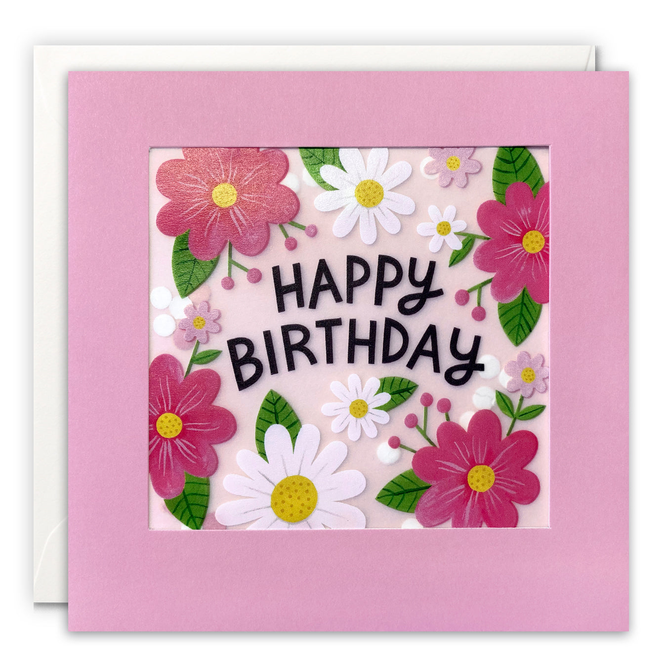 Pink and White Flowers Birthday Card with Paper Confetti - Paper Shakies by James Ellis