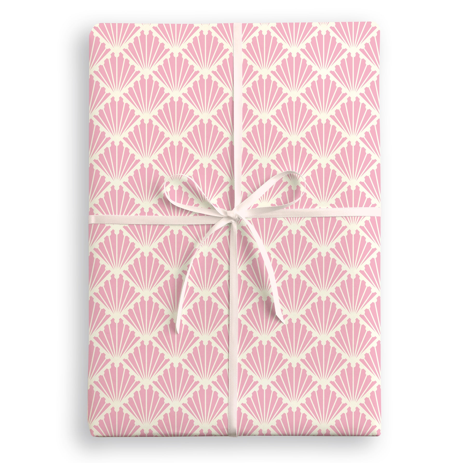 A sheet of high quality wrapping paper with a beautiful pink and cream pattern inspired by Art Deco.