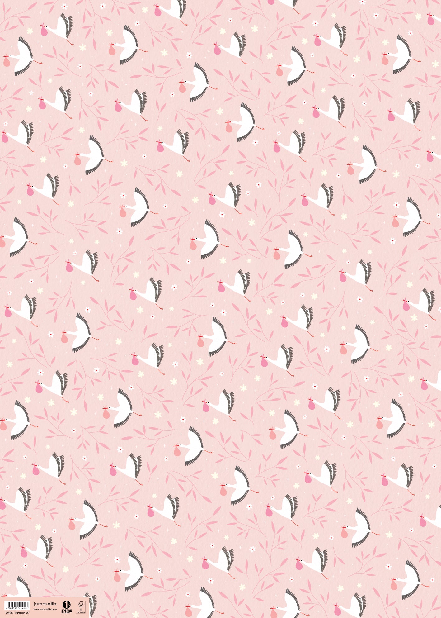 Pink Storks Wrapping Paper by James Ellis