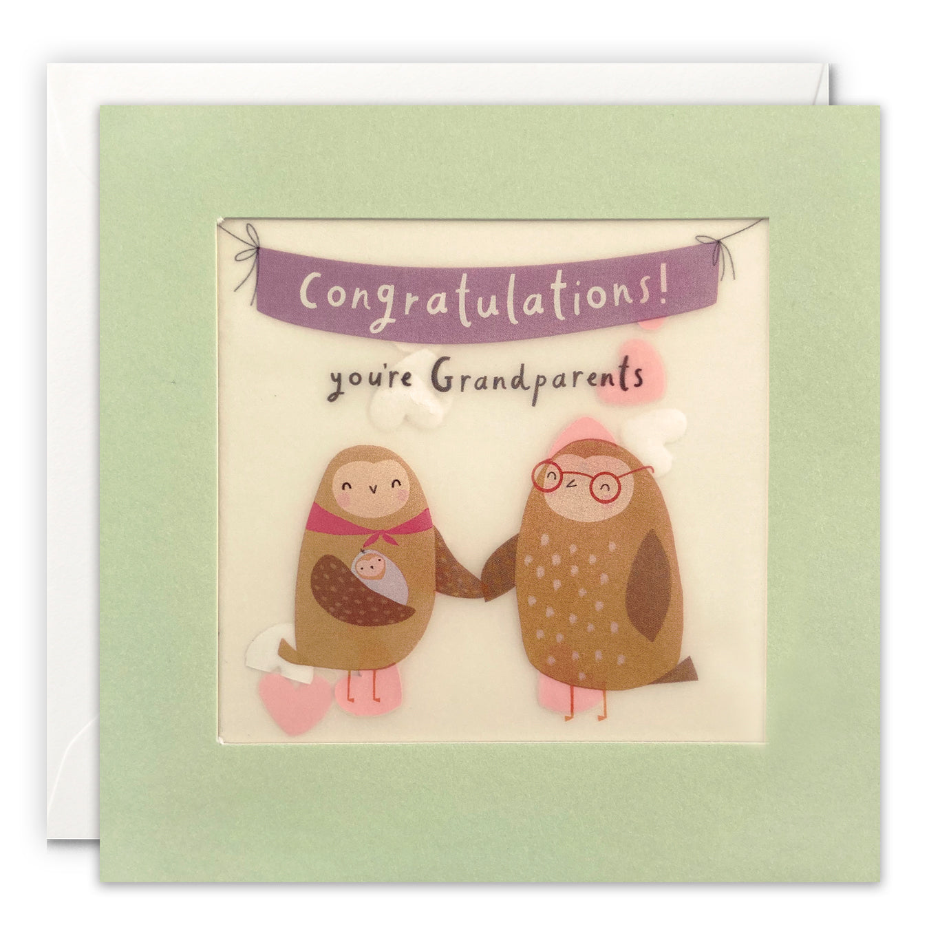 Owl Grandparents New Baby Card with Paper Confetti - Paper Shakies by James Ellis